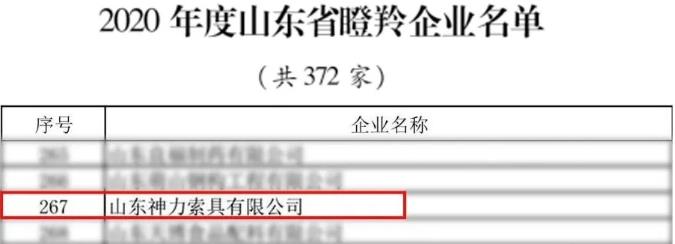 根據(jù)省委省政府《關于支持非公有制經(jīng)濟健康發(fā)展的十條意見》(魯發(fā)〔2017〕21號)、《山東省瞪羚、獨角獸企業(yè)認定管理辦法》(魯工信發(fā)〔2020〕8號)、《關于組織申報2020年度山東省瞪羚、獨角獸企業(yè)的通知》等文件精神,省工業(yè)和信息化廳牽頭組織開展了2020年度瞪羚、獨角獸企業(yè)評選工作。山東神力索具有限公司榜上有名,光榮入選“山東省瞪羚企業(yè)”。