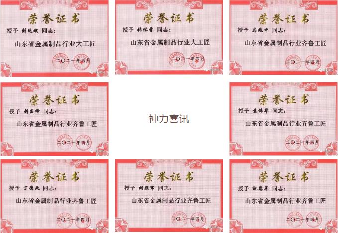 為深入貫徹習近平新時代中國特色社會主義思想,全面落實新時期產業工人隊伍建設改革目標任務,積極營造尊重知識、尊重人才的氖圍,提高廣大員工對“工匠精神”的認識,建設知識型、技能型、創新型勞動者大軍。4月19日上午,公司董事長杜亞中、總經理杜大平在公司辦公樓為“山東省金屬制品行業大工匠、齊魯工匠”獲得者頒發了榮譽證書和獎杯。