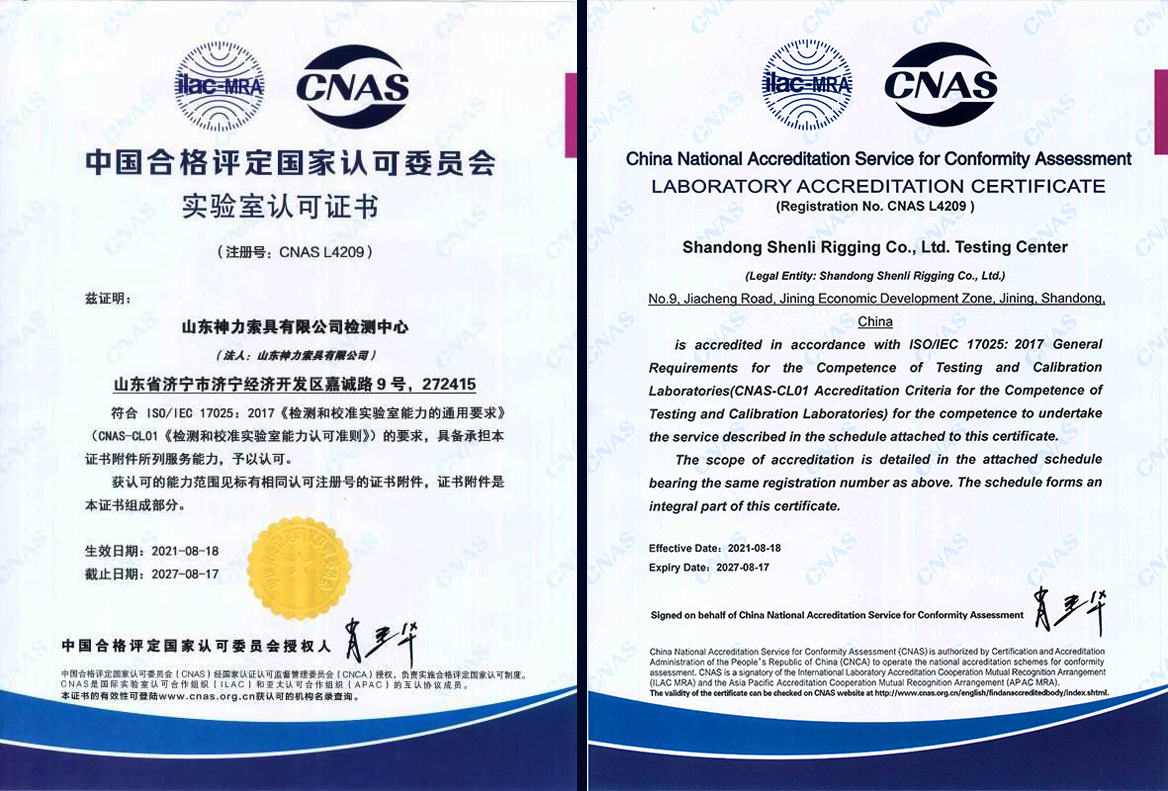 熱烈祝賀神力索具檢測中心順利通過CNAS國家認可實驗室認證