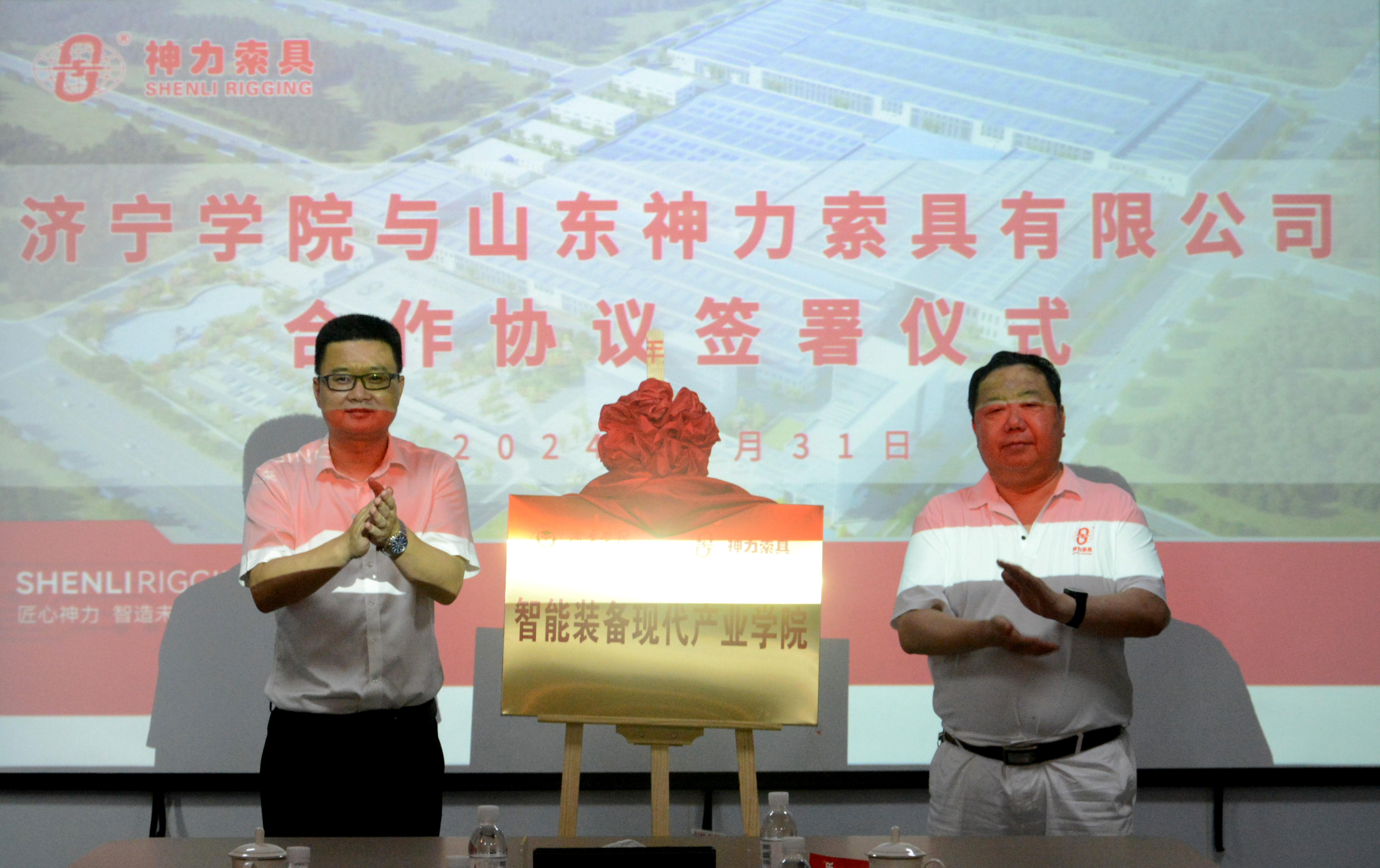 濟(jì)寧學(xué)院副校長(zhǎng)劉國(guó)棟與神力索具黨委書(shū)記杜亞中共同為“濟(jì)寧學(xué)院實(shí)踐教學(xué)基地”、“濟(jì)寧學(xué)院-神力索具智能裝備現(xiàn)代產(chǎn)業(yè)學(xué)院”揭牌。劉國(guó)棟表示,神力索具作為市域智能制造轉(zhuǎn)型升級(jí)模范企業(yè),是廣大理工科學(xué)子向往的實(shí)踐寶地,通過(guò)合作建立該學(xué)院,將大大提高實(shí)踐教學(xué)質(zhì)量,激發(fā)廣大學(xué)子科技創(chuàng)新精神、創(chuàng)業(yè)能力和實(shí)踐能力。校企合作,互利共贏。在未來(lái)將形成更多的高質(zhì)量合作成果,推動(dòng)區(qū)域高質(zhì)量發(fā)展。