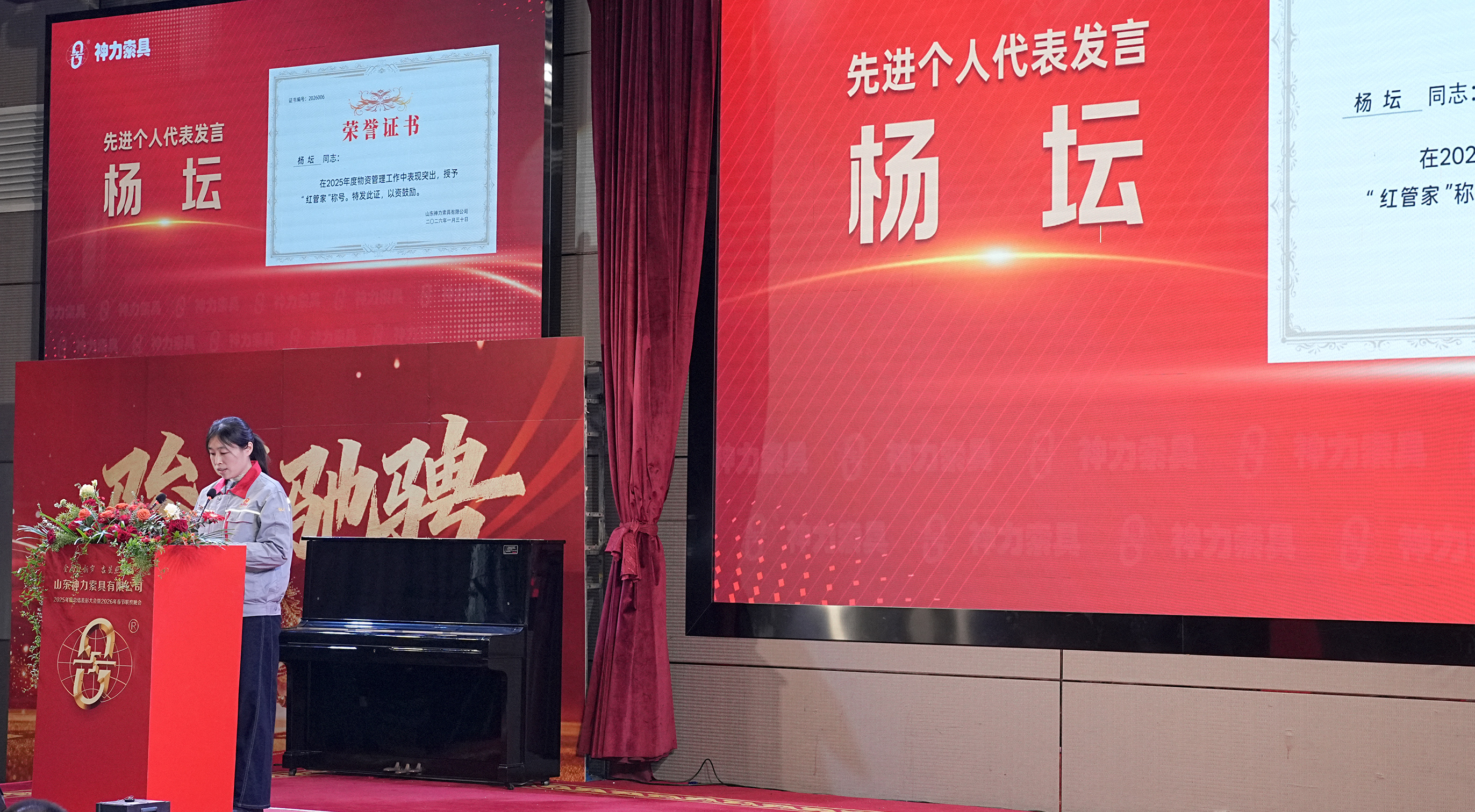 下午3時,神力索具二零二五年度總結表彰大會在雄壯的國歌聲中拉開帷幕。神力索具黨委書記杜亞中、董事長兼總經理杜大平、先進分廠(部室)、先進班組、先進個人及分廠副主任以上干部,同時還邀請了優秀員工的父母齊聚一堂,共襄盛典。