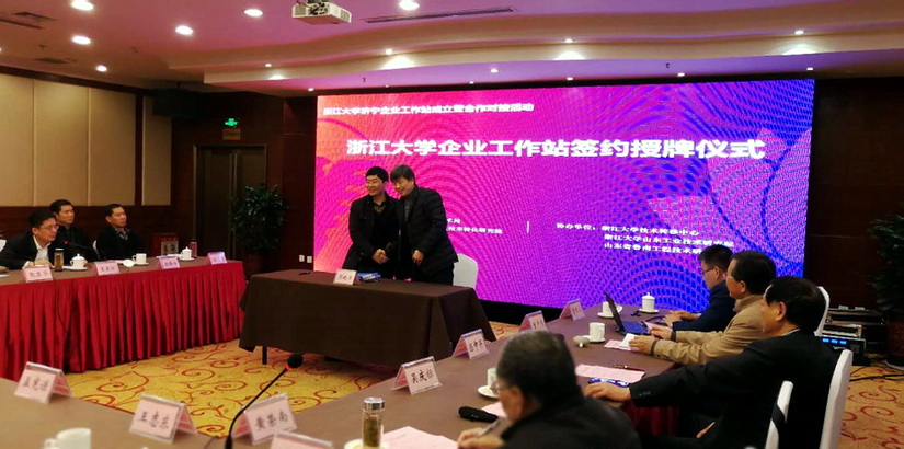 董事長、總經理杜亞中致歡迎詞 濟寧市財政局副局長王玉留、濟寧市委組織部人才辦主任楊志國為院士工作站揭牌 參會人員合影留念 2017年5月20日,山東神力索具有限公司和浙江大學機...