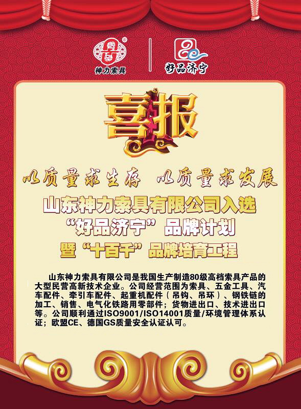 為了提升品牌形象,有效增強品牌知名度和市場競爭力,山東神力索具有限公司成功在百家企業競爭中榮幸入圍央視國家品牌計劃的民族品牌企業。我們公司將以新型企業微記錄片的形...