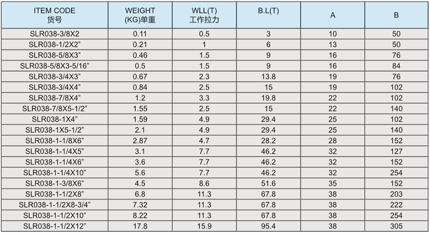 常規(guī)標(biāo)記:    3/8X2   WLL0.5T  CE  SLR
