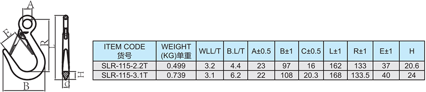 SLR115 合金鋼含舌眼型大開口鉤
