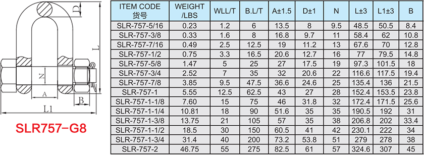 SLR757-8級螺栓銷合金鋼D型卸扣